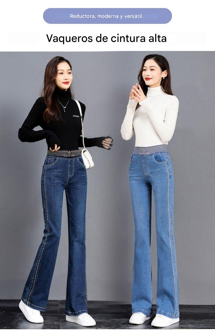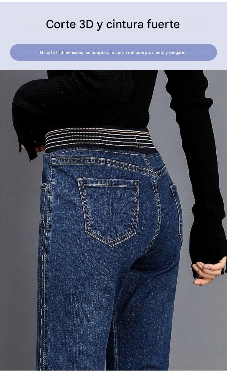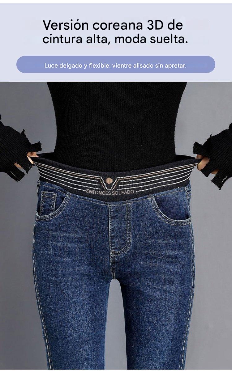 💕【Novedad】 Vaqueros de lana de cintura alta con diseño de cinturilla recortada.
