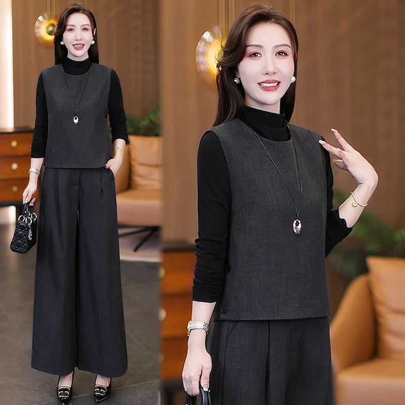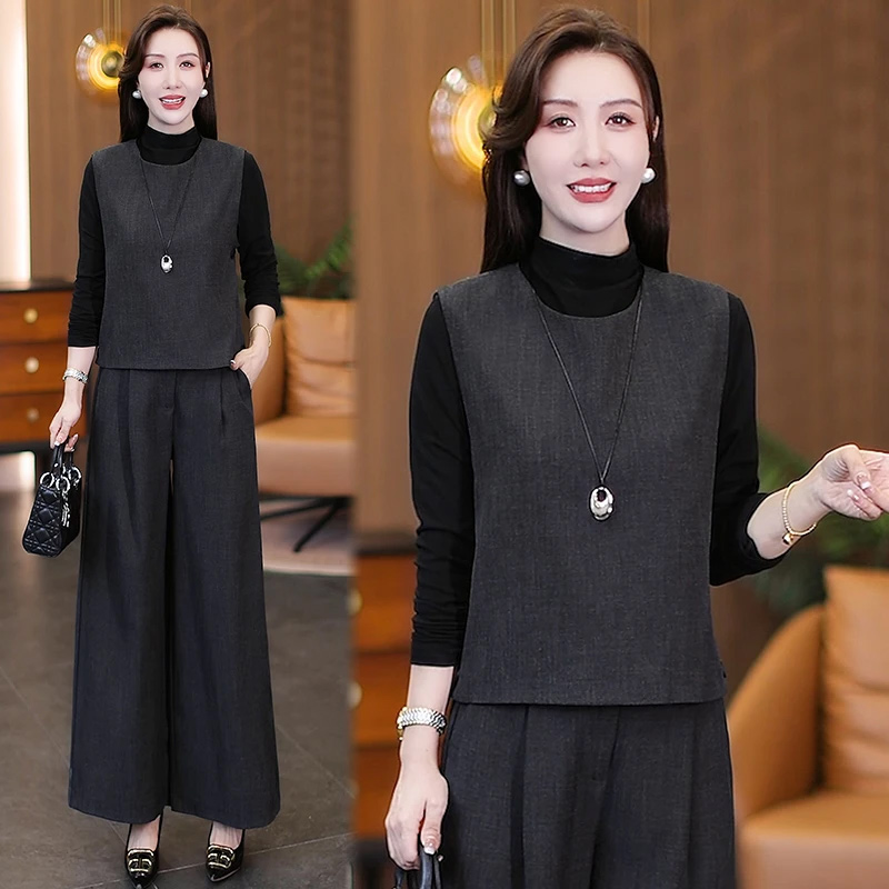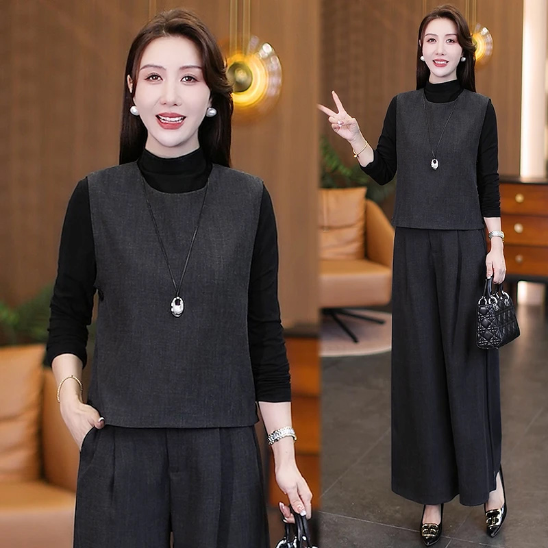 đ„đăM-4XLăNuevos conjuntos de mujer otoño: Modernos, juveniles y moldeadores đ (chaleco + top bĂĄsico + pantalĂłn ancho)
