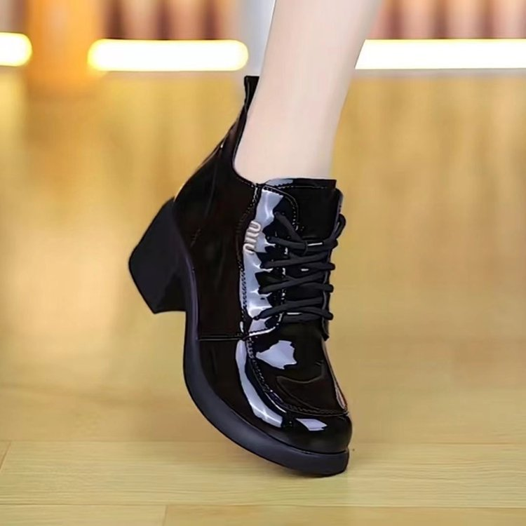 【35-40】 Νέα γυναικεία δερμάτινα παπούτσια για την άνοιξη Μπότες μόδας με χοντρό κάτω μέρος με ψηλά τακούνια