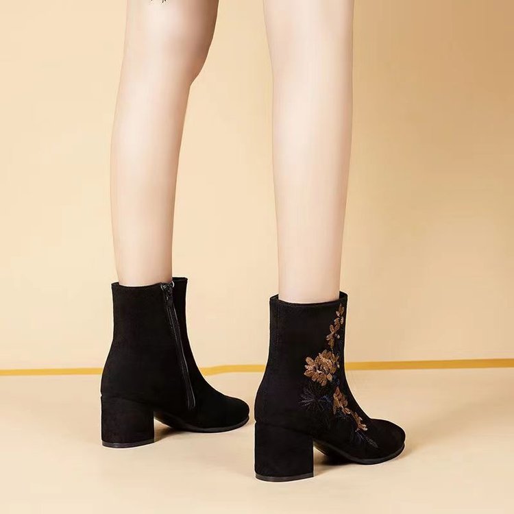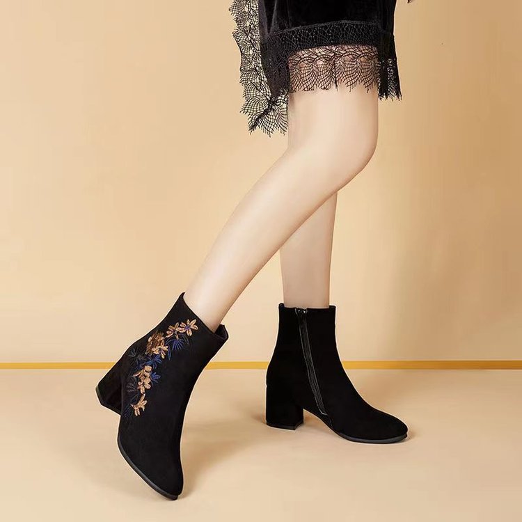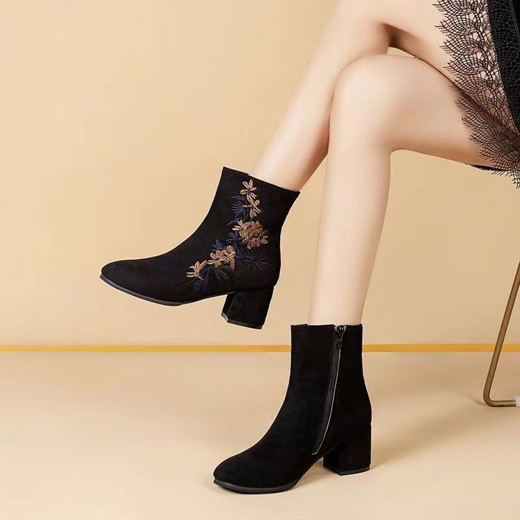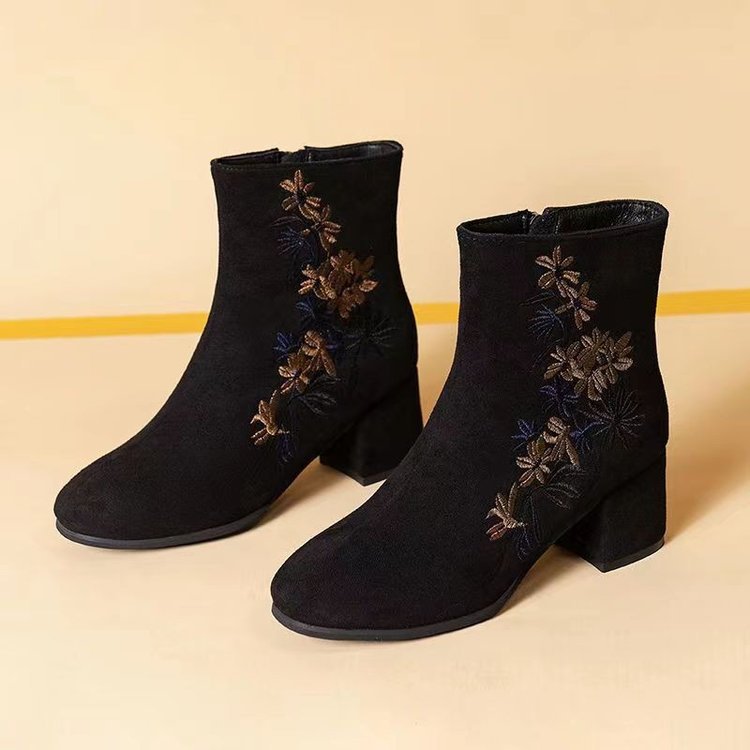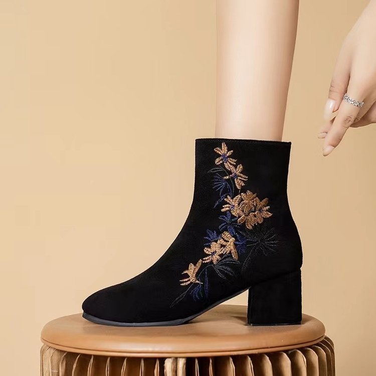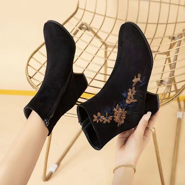 🥰【35-40】Botas de invierno de terciopelo bordadas a mano para mujer: botas de nieve de ante, suela de goma antideslizante, tacón de 5 cm, aptas para uso en interiores y exteriores.