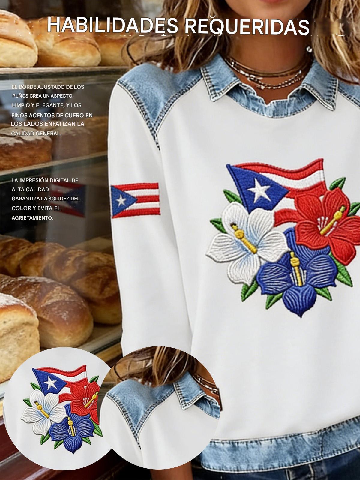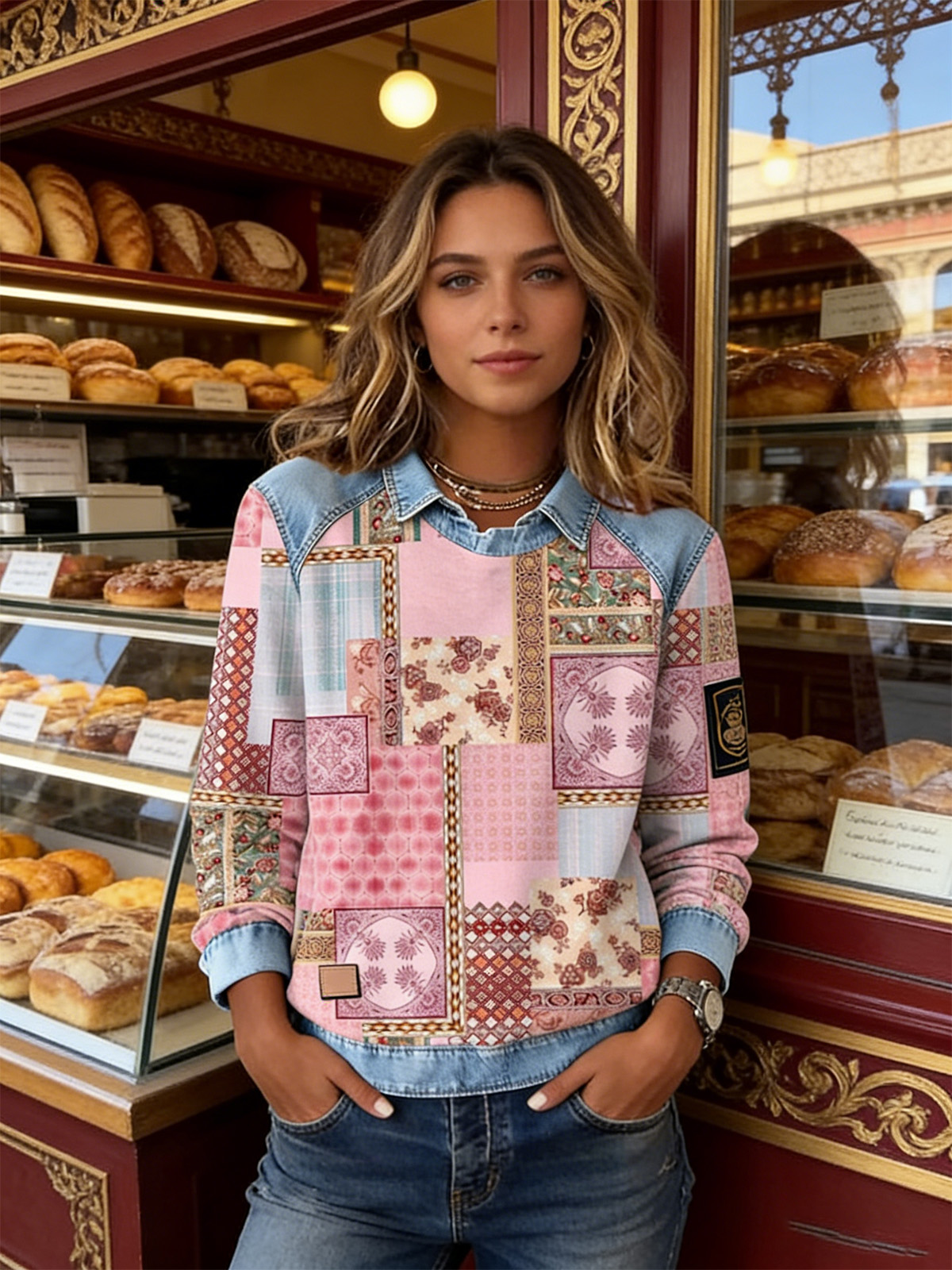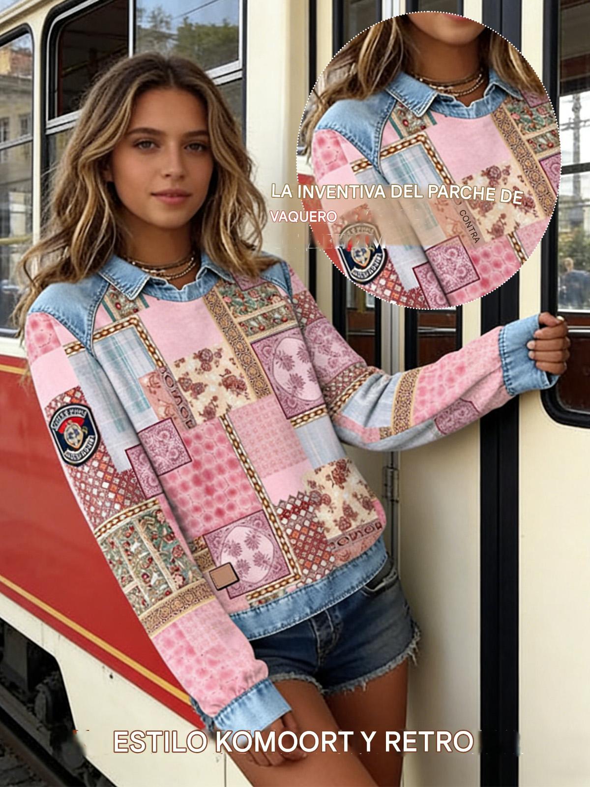 【S-5XL】👕Camisa vaquera con capucha y patchwork para mujer,el diseño de patchwork muestra un gusto único.