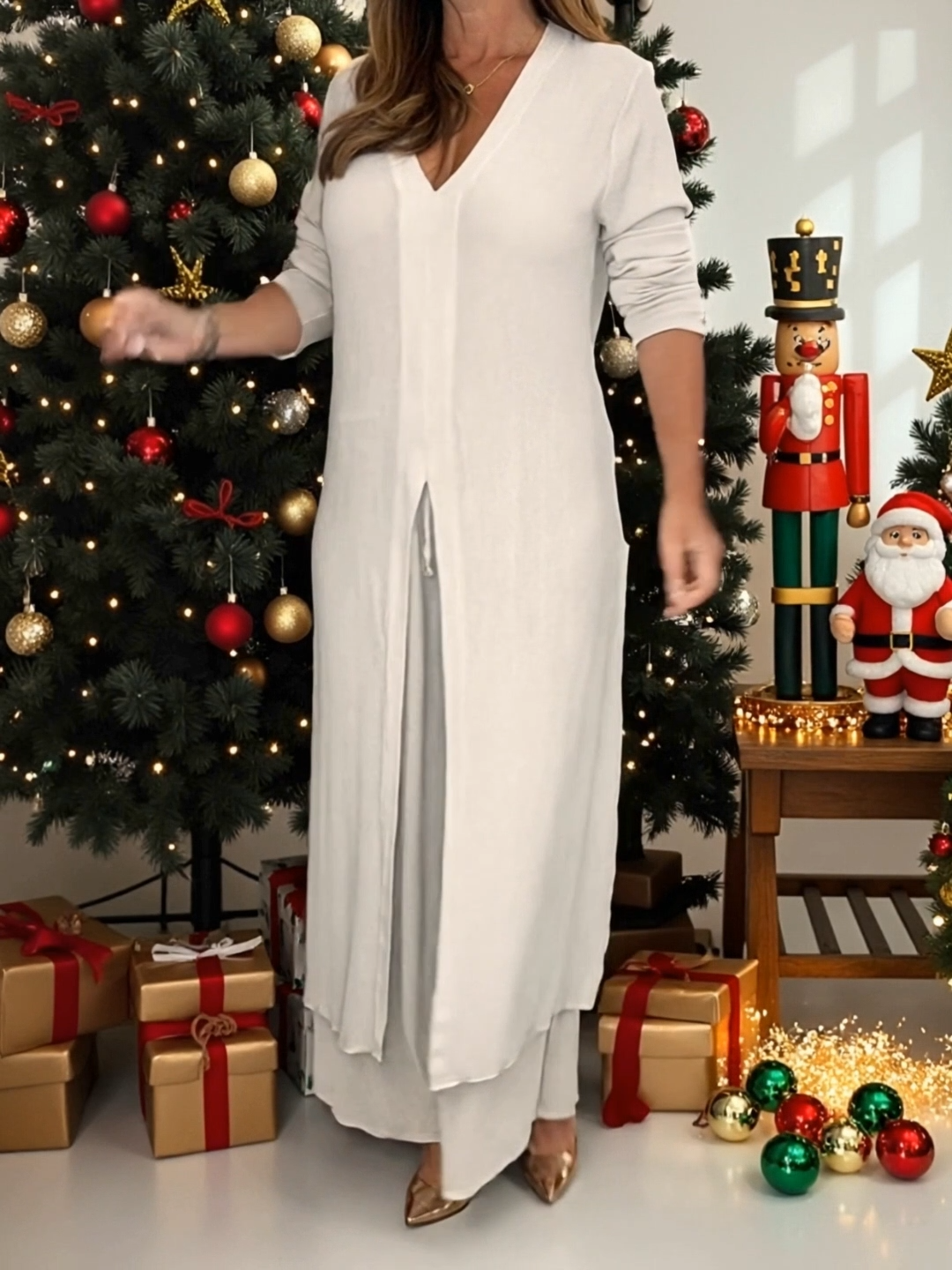 【S-5XL】El atuendo de 2026 incluye pantalones y un top largo con aberturas.